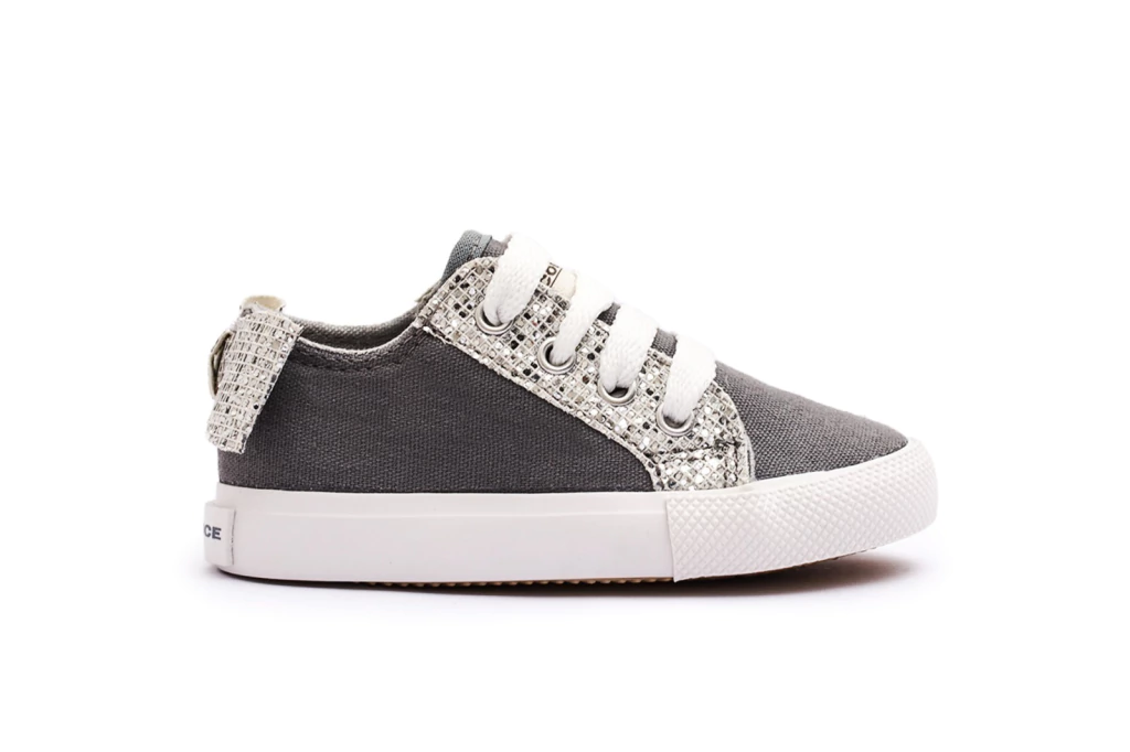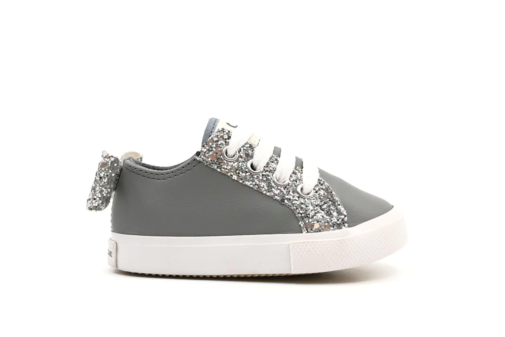 Detalle de Glitter en cordonera y moño en el talón a tono.